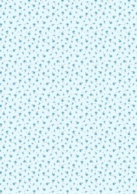 This is a handmade ladies dress made from 100% satin- cotton fabric. The dress has tiny blue and green flowers on a light-blue background. The pattern is a Unique Desighn which made especially for Yerushalayma. The dress has a wide Peter Pan collar that is edged with a beige crochet lace. The belt and the cuffs are decorated with 2 beige laced narrow ribbons.