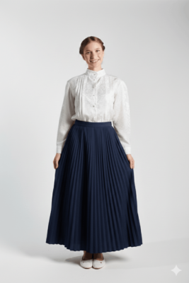 This design brings back to the Pioneer era and is modest and very feminine.