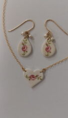 סט קסום של שרשרת לב מקרמיקה עם עגילים תואמים – וינטג'