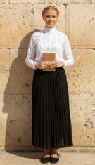 חולצת קפלים לבנה קלאסית ארוכה לנשים Blouse-A