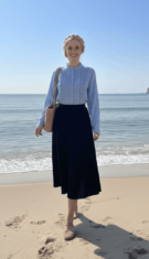 חולצת קפלים תכלת קלאסית ארוכה לנשים Blouse-Aa