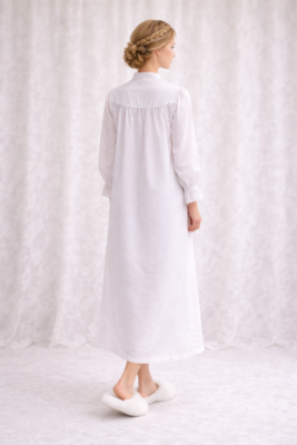 כותונת לבנה מכותנה במראה וינטג' קלסי מק"ט Nightgown-B