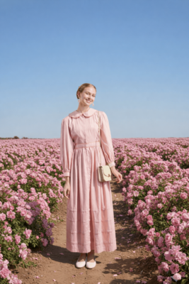 היא עשויה מ־100% כותנה איכותית ונושמת בגוון וורוד עתיק ורך, דגום שמשרה אור, רכות ושמחה שקטה.