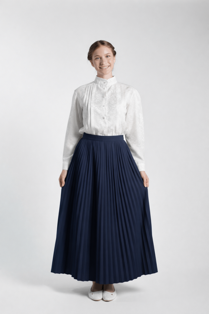 This design brings back to the Pioneer era and is modest and very feminine.